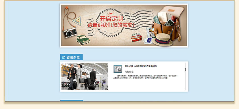 Project Description 百悦逸游于2012年初由二位资深的旅行家创办,是成都传媒集团旗下成都新闻国际旅行社有限公司的高端旅游品牌,总部位于成都高新区天府大道中段美年广场。在百悦逸游成立之前,创始团队亲自到全球三十多个国家实地考察,带着第一手的资讯和执着的信念创立了中国西部第一家真正意义上的私人定制旅行机构。百悦的旅行不是跟团挤大巴,不是十天去十个国家,更不是没完没了的... Official website address 河池http://www.100.travel I want to share