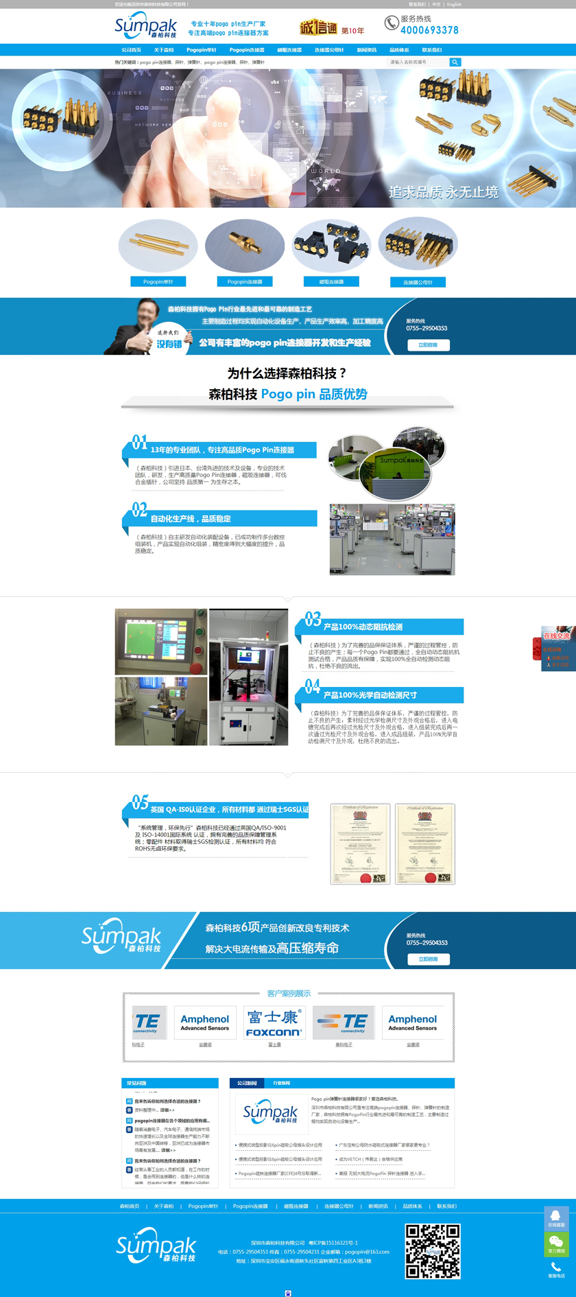 Project Description 深圳市森柏科技有限公司是专注高端pogo pin连接器、探针、弹簧针的制造厂家,森柏科技拥有Pogo Pin行业最先进和最可靠的制造工艺,主要制造过程均实现自动化设备生产,产品生产效率高,加工精度高,重要检测过程均采用自动化快速识别系统,大大降低了人为操作失误的风险,极大的提升了检测效率,工艺过程得到极大的改善和满足。因此产品质量和稳定性获得巨大突破。 Official website address 河池http://www.zgsumpak.com I want to share
