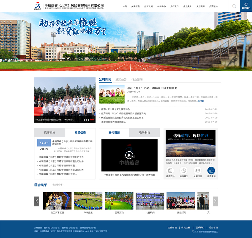 Project Description 中精蕴睿(北京)风险管理顾问有限公司2013年,现有教职工及各科目教育专家80多人,致力于为各中小培训学校(机构) 提供教育相关政策咨询与指引、法律服务、人才引进与培养、师资队伍建设与培训、教学教研与学科创新、市场营销企划、文化 理念塑造与品牌输出的专业化教育管理全方位的综合服务。 Official website address 河池http://in-re.com/ I want to share